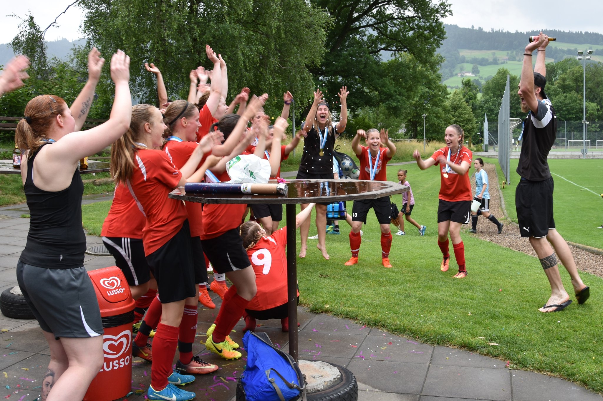 Fast zeitgleich mit dem "Eis", schafft auch das Team der SG Stans-Engelberg, mit einem 3:1 Sieg gegen den FC Willisau, den Aufstieg und wird ab nächster Saison in der 1. Liga spielen.